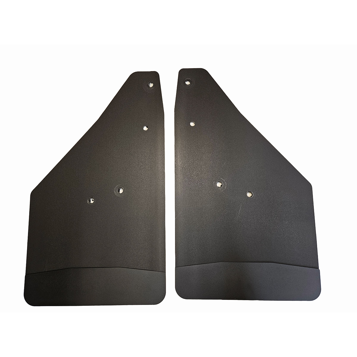 Ultimate Flaps use a grooved material to direct mud snow and rain down and away from your vehicle and whatever you tow. Ultimate Flaps won’t sail back while going down the road like rubber flaps. Additionally, our mud flaps won’t be torn off by backing up in deep snow. Mud with clay content that builds up won’t make Ultimate Flaps rest against your tires because of the weight of the built-up mud.